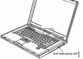observe the activity LED for the DVD-RAM drive. See Figure 1 (X335 server)